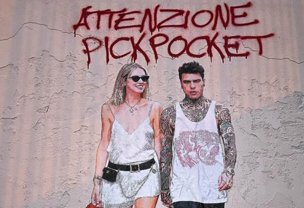 ‘Attenzione pickpocket‘ e un disegno con Chiara Ferragni e Fedez. E’ l’opera dello street artist EvyRain comparsa sui muri di Padova dopo le vicende dell’ultima settimana che hanno visto l’imprenditrice e influencer al centro di un provvedimento dell’Antitrust per il caso dei pandori Balocco, e poi al centro delle polemiche per le uova di Pasqua griffate. Pickpocket è il termine che si usa per indicare i borseggiamenti, comunemente usato per avvisare chi utilizza i mezzi pubblici (attenzione pickpocket è la scritta e il messaggio che compare su bus e metropolitane in tante grandi città). https://www.lapresse.it/cronaca/2023/12/24/chiara-ferragni-e-fedez-sui-muri-di-padova-attenzione-pickpocket/