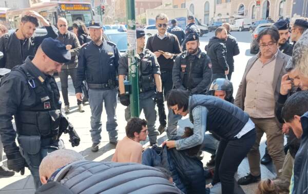 Alcuni attivisti di Ultima Generazione hanno bloccato Via del Tritone a Roma, all’altezza di Via Sistina e Piazza Barberini, sdraiandosi per terra sulle strisce pedonali. Immediato l’intervento della polizia che ha rimosso i manifestanti incatenati e seminudi.