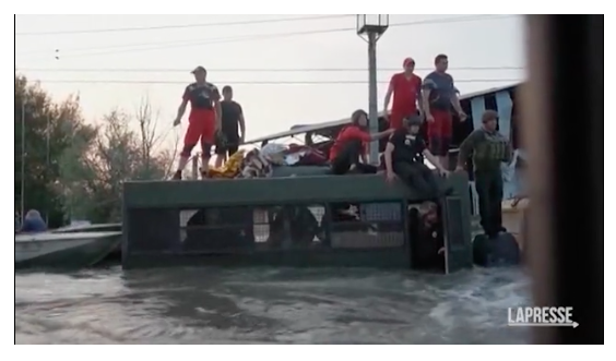 Decine di sfollati su un’isola del fiume Dnipro cercano di mettersi in salvo dopo la rottura della diga Kakhovka che ha provocato l’innalzamento delle acque. Un camion militare è rimasto bloccato. Sono circa 22.000 le persone che vivono in aree a rischio di inondazione nelle zone controllate dai russi sul lato orientale del fiume, mentre 16.000 vivono nella zona più critica nel territorio controllato dagli ucraini sul lato occidentale. Video al link: https://www.lapresse.it/esteri/2023/06/07/diga-distrutta-in-ucraina-levacuazione-dalle-zone-allagate/