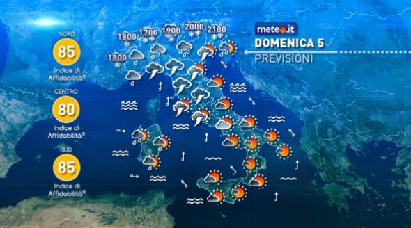 Previste piogge, temporali e neve