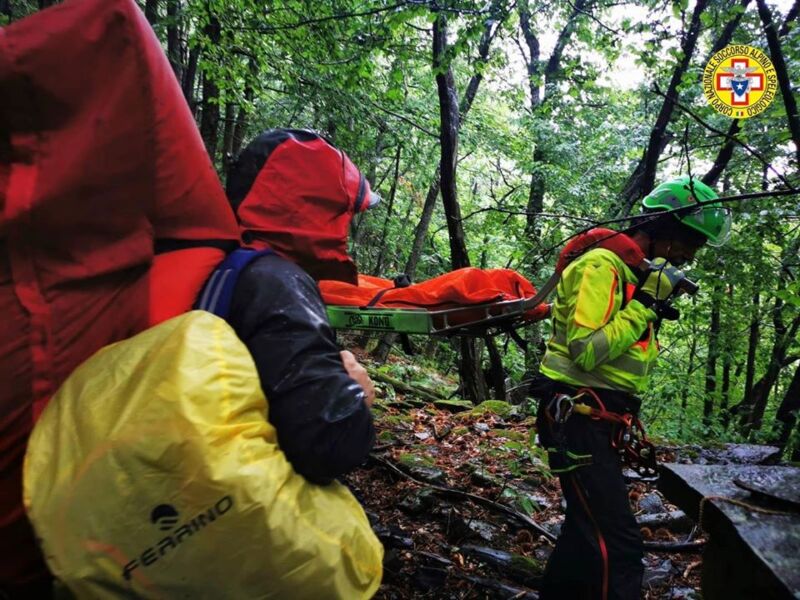 Il gruppo era partito da Lizzano, imboccando il sentiero c.a.i n° 125 per andare in cima al Monte Pizzo. Attorno alle 15,30 e in zona si è abbattuto un violento temporale. La donna arrivata in un punto moto ripido è scivolata riportando un trama molto doloroso ad una gamba che non le ha consentito più di proseguire. Le amiche hanno allertato il 118 che ha inviato sul posto l’ambulanza di Lizzano e la squadra del Soccorso Alpino e Speleologico stazione Corno alle Scale. I tecnici, sotto una pioggia molto intensa si sono incamminati a piedi verso il punto indicato. Giunti sul posto, alla donna è stato immobilizzato l’arto dolorante e dopo averla posizionata sulla barella portantina è stata trasportate sulla strada dove ad attendere c’era l’ambulanza che ha provveduto a trasportarla all’ospedale di Porretta.