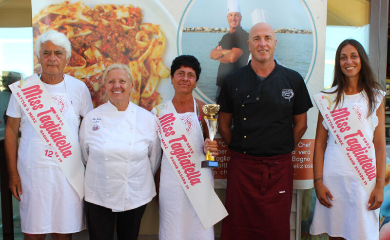 Gatteo Mare (FC). È stato un bellissimo pomeriggio di festa, legato alle tradizioni della cucina romagnola, quello che si tenuto nel pomeriggio di venerdì scorso, al Bagno Alvaro di Gatteo Mare – Riviera Romagnola (di cui è titolare la famiglia Spinelli), per l’edizione 2022 di “Miss Tagliatella”, il consueto appuntamento estivo, organizzato dalla Direzione del Bagno Alvaro e dal ristorante “il Mare in Pentola” di Gatteo Mare, con il coordinamento della Lady Chef Albarosa Zoffoli e dello Chef Alessandro Spinelli. L’evento, seguito da un numerosissimo pubblico, è stato condotto da Paolo Teti.