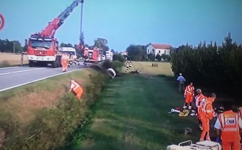 L’incidente è avvenuto all’altezza di Alfonsine, tra T. Corelli e Voltana attorno alle 17.45. La Statale Adriatica è stata chiusa. Dopo il prezioso intervento degli automobilisti sul posto sono arrivati i soccorsi in massa, con due elicotteri e sette ambulanze di cui due medicalizzate.
