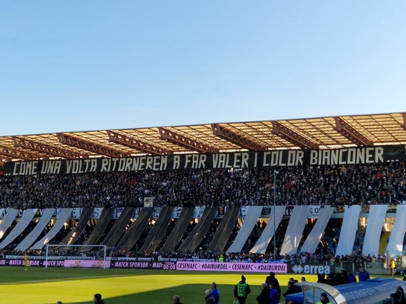DOPPIO CAMBIO – Al 3’ della ripresa, il Cesena, passa in vantaggio. Azione personale di Kargbo, assist (involontario) per Shpendi che trafigge Zaccagno: per l’albanese è il 10esimo gol stagionale. In 14 apparizioni. Tanta. Tantissima roba. Tre minuti dopo, però, la Torres pareggia i conti. Con l’implacabile Fischnaller. Al 59’ Sphendi va vicinissimo alla doppietta: il suo colpo di testa si perde (incredibilmente) sul fondo di un nulla. A metà ripresa Toscano si gioca la doppia carta Corazza-Saber (fuori Kargbo e Berti). Ma gli ospiti restano pericolosi. Al 75’ sussulto bianconero:tiro di ‘ringhio’ De Rose (quanti chilometri macinati per l’ex Palermo…), Zaccagno c’è. Non siamo sicuramente dinnanzi al Cesena dei giorni migliori, ma Pieraccini (buona la sua prova) & Friends provano a vincerla sino alla fine. Donnarumma, a sinistra, ora sa far male. Il muro della Torres, però, non crolla. Finisce 1-1. La sfida per il 1° posto continua. Così come continua la musica (di merda) vomitata dagli altoparlanti del Manuzzi. Maledetto disc jockey … (Flavio Bertozzi)