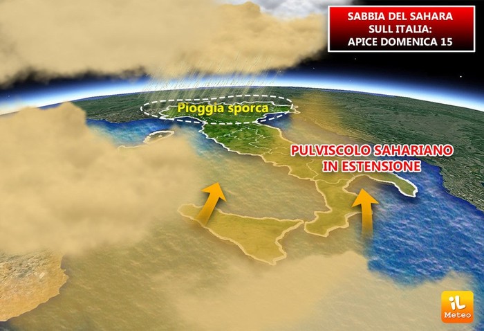 I venti che soffieranno moderati dall’Africa trasporteranno la sabbia del deserto che sporcherà il terreno e ogni cosa.