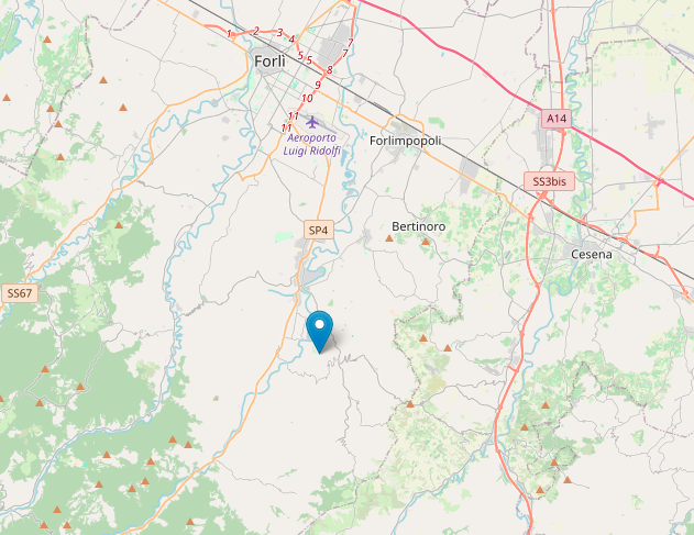 Un lieve terremoto di magnitudo ML 2.4 è avvenuto a 4 km da Meldola (FC), il giorno di Natale quando mancavano tre minuti all’una e quindi all’ora du pranzo, quando la maggior parte della popolazione era a tavola.