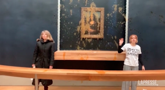 Due attiviste per l’ambiente hanno imbrattato il vetro che protegge La Gioconda, al museo del Louvre a Parigi, lanciandogli contro della zuppa. Le due manifestanti, come mostra un video diffuso in rete, hanno esibito delle magliette con la scritta “Riposte alimentaire” (“Risposta alimentare”). Non è la prima volta che il quadro più famoso del mondo è oggetto di atti dimostrativi da parte di attivisti per il clima. Nel maggio del 2022, infatti, contro la tela di Leonardo Da Vinci, sempre protetta da un vetro, un attivista scagliò una torta. VIDEO AL LINK: https://www.lapresse.it/esteri/2024/01/28/louvre-attiviste-per-clima-lanciano-zuppa-sulla-gioconda-2/