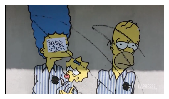 Vandalizzato uno dei due murales della serie “Binario 21, I Simpson deportati ad Auschwitz” dell’artista aleXsandro Palombo apparso sui muri del Memoriale della Shoah di Milano il 27 Gennaio in occasione della giornata della Memoria. Lo sfregio martedì 18 aprile nel giorno dello Yom HaShoah, la giornata del ricordo degli ebrei che furono uccisi durante l’Olocausto Un’opera dall’alto valore simbolico che ha fatto il giro del mondo, l’artista aveva ritratto la famiglia Simpson deportata nei campi di concentramento nazisti per raccontare il prima e il dopo la deportazione, una riflessione profonda sull’orrore dell’olocausto e un monito a custodire la memoria. “Queste opere sono un inciampo visivo che ci costringono a vedere quello che non vediamo più. Le cose più terribili possono diventare realtà e l’arte ha il dovere di ricordarle perché è un potente antidoto ai rischi dell’oblio” aveva dichiarato l’artista. L’opera è stata deturpata con strisciate di colore nero e le stelle di David di colore giallo che erano sulle divise di Auschwitz indossate dai Simpson sono state tutte ricoperte con vernice nera. Anche se non si conosce ancora l’identità di chi ha compiuto l’atto antisemita, si potrebbe risalire al volto dell’autore grazie alla telecamera di video sorveglianza del Museo che è posizionata a un paio di metri sopra l’opera vandalizzata. Video al link: https://www.lapresse.it/cronaca/2023/04/19/milano-vandalizzato-murale-simpson-a-memoriale-della-shoah/