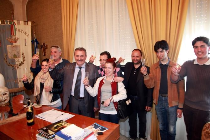 (Nella foto, terzo da sinistra, Mengaccini mentre brinda durante la sua elezione a sindaco)