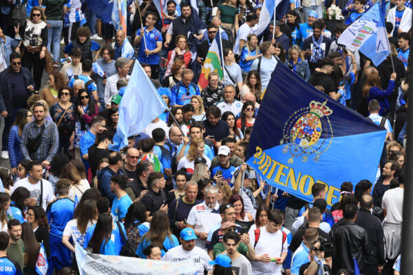 Tutto rimandato: il pareggio Napoli-Salernitana fa slittare la festa scudetto. Lo scontento c’è, la delusione no perché in fondo – si dicono – manca poco. Il terzo scudetto del Napoli continua a essere a un passo e la mancata conquista in casa, oggi contro la Salernitana, lascia un po’ d’amaro in bocca nelle migliaia di cittadini che dal mattino si sono riversati in strada, anche per evitare di rimanere bloccati al di fuori della maxi area pedonale scattata alle 14.
