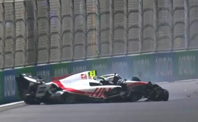 Incidente per Mick Schumacher nelle qualifiche del Gp dell’Arabia Saudita e prove sospese. Violento impatto contro il muro per il pilota della Haas nella esse veloce che porta verso la prima fotocellula del primo settore della pista. Schumacher è cosciente, come ha reso noto il team, ed è stato trasportato al centro medico.