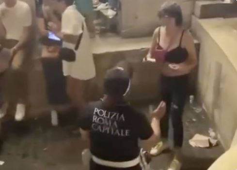 Una giovane donna ha fatto il bagno nella Fontana di Trevi, a Roma, accompagnata da urla e fischi dei turisti lì presente. Fatta uscire da un agente della polizia locale di Roma Capitale lo colpisce con uno schiaffo facendogli cadere in acqua il cappello di ordinanza. Poco dopo, portata fuori dalla Fontana, ha scaraventato a terra una vigilessa intervenuta insieme a dei colleghi. La scena, immortalata in un video, è stata diffusa sui social e in breve è diventato virale. https://www.lapresse.it/cronaca/2023/06/05/roma-fa-il-bagno-nella-fontana-di-trevi-poi-aggredisce-vigili/