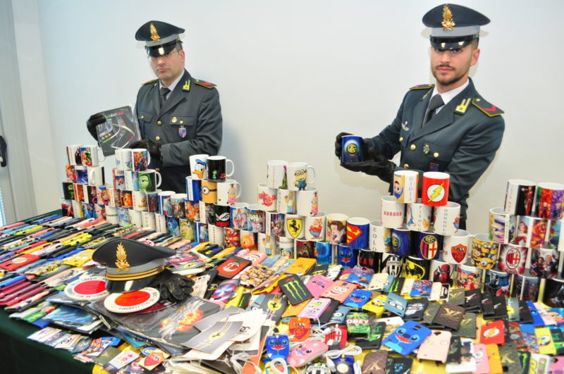 Nei giorni scorsi i Finanzieri della Compagnia di Faenza, durante un mirato servizio di controllo disposto in occasione della recente fiera dell’elettronica, individuavano una bancarella che esponeva per la vendita numerose cover per cellulari, tazze in ceramica, magliette ed altri articoli riportanti noti marchi del mondo cinematografico e dello sport tutti non originali: Marvel, Walt Disney, Star Wars, Obey, Valentino Rossi, Ferrari nonché varie squadre di calcio italiane ed estere oltre ad articoli con falso logo Louis Vuitton.