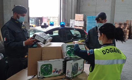 Sequestrati dalla Guardia di Finanza e dai funzionari dell’Agenzia delle Dogane di Ravenna, 2.196 giocattoli elettrici e radiocomandati – giunti dalla Cina al porto della città romagnola – tra cui droni, auto radiocomandate, elicotteri e fucili con luci e suoni.