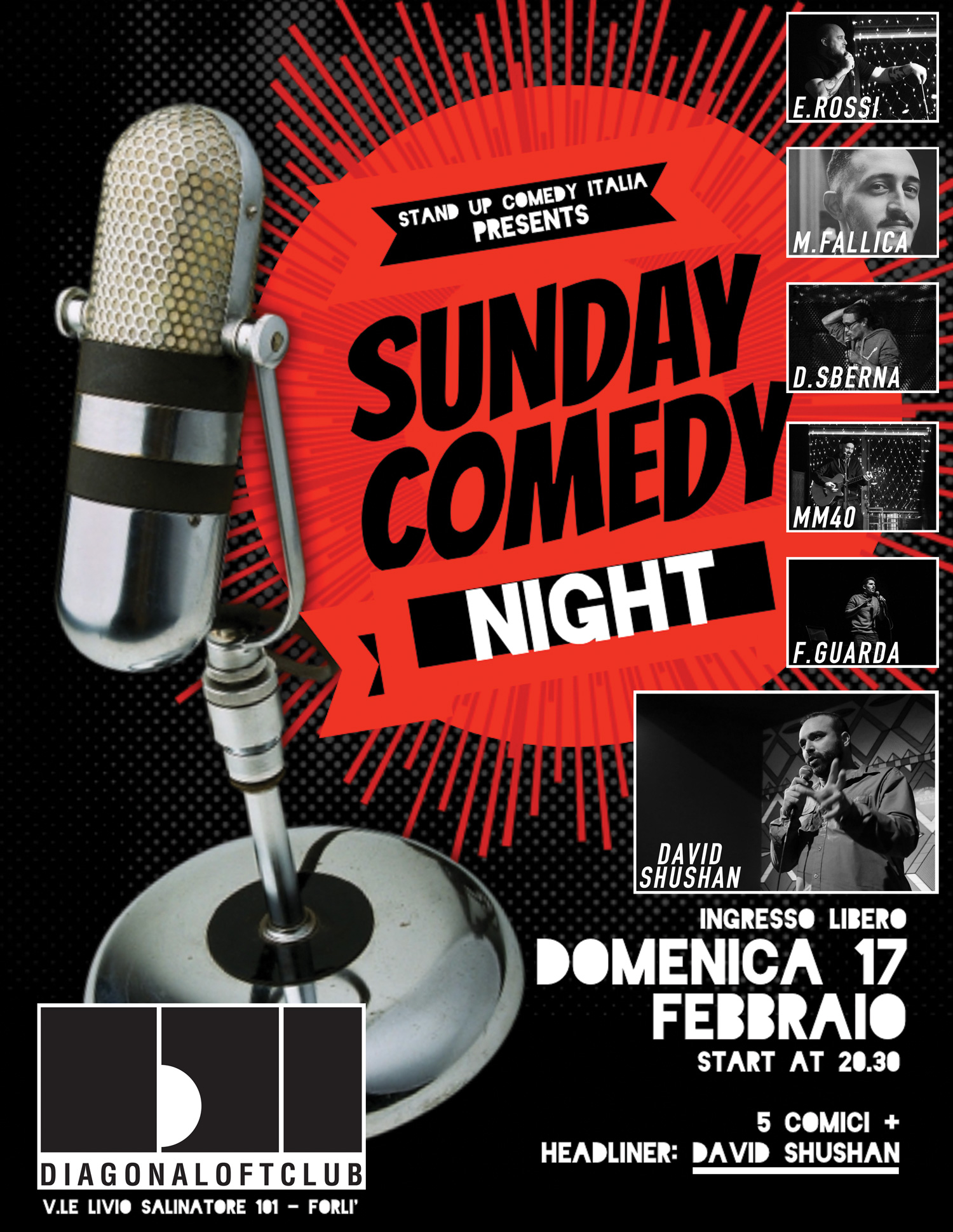 Dopo l’entusiasmante evento dello scorso 2 dicembre, Domenica 17 Febbraio alle 20:30, ritorna a Forlì, al Diagonal la StandUp Comedy in un evento organizzato da Stand Up Comedy Italia.