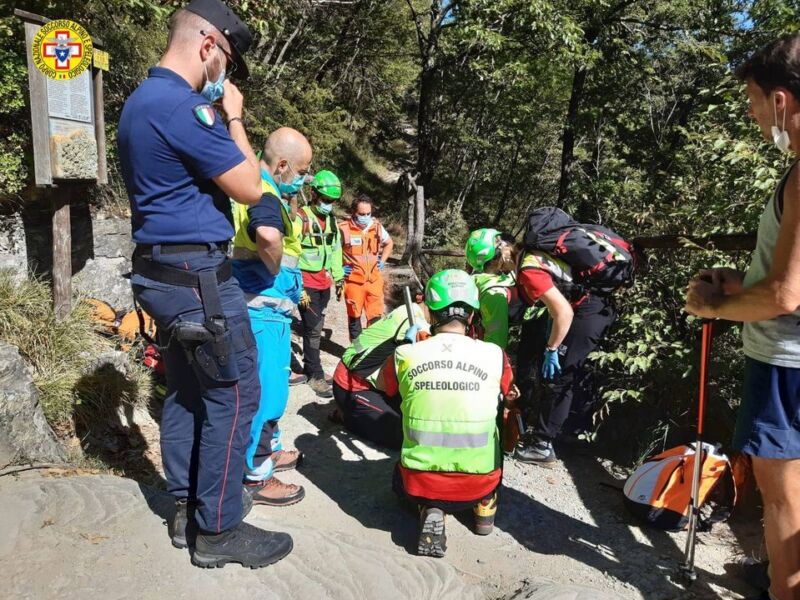 La comitiva ha imboccato il sentiero C.A.I N° 407 per raggiungere la cascata. Arrivati all’altezza del terrazzo che si trova di fronte alla cascata la signora è scivolata cadendo rovinosamente a terra riportando un trauma alla gamba che non le ha più consentito di proseguire. Gli amici hanno chiamato il 118 riuscendo a dare l’esatta posizione, grazie ai cartelli geo referenziati posizionati dal Soccorso Alpino Speleologico nell’area del parco. Sul posto viene invita l’ambulanza di San Benedetto, i Carabinieri Forestali di San Benedetto, che erano già in zona per un normale servizio di vigilanza e che hanno poi provveduto ad aprire la sbarra per consentire ai mezzi di soccorso di avvicinarsi il più possibile al luogo dell’evento, il Soccorso Alpino e Speleologico, stazione di Monte Falco che invia sul posto la squadra in pronta partenza della valle Montone composta da sette operatori che arrivati sul posto hanno immobilizzato l’arto infortunato, posizionato la paziente sulla barella portantina e trasportata fino alla al punto dove erano arrivati l’ambulanza e i mezzi del CNSAS. La donna ha comunque rifiutato il ricovero