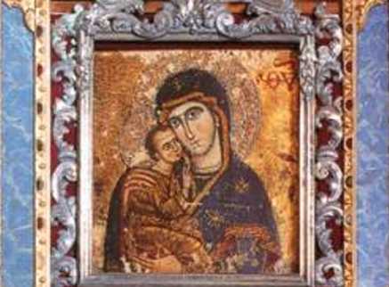 Nel santuario della Madonna del Lago si venera l’immagine, di stile orientale, dipinta su tela e aderente ad una tavola di legno che, secondo la tradizione, fu tratta in salvo nell’VIII secolo durante la lotta iconoclasta. Portata all’abbazia di Santa Maria d’Urano, a Bertinoro, scomparve ripetutamente per ricomparire sempre vicino al lago dove poi fu edificato il santuario. L’immagine rappresenta la Madonna in trono con il bambino Gesù e misura oltre un metro di altezza ma di essa è visibile solo la parte superiore perché quella inferiore è coperta da una lamina d’argento, opera artigianale del 1741.