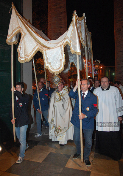 In occasione della festa del Corpus Domini che sarà celebrata domenica 3 giugno, giovedì 31 maggio si svolgerà la processione solenne per le vie del centro di Forlì. La processione partirà dalla Cattedrale dopo la messa che il vescovo, mons. Livio Corazza, presiederà alle 20.30. La processione, accompagnata da sacerdoti, religiosi e religiose, dai bambini che hanno ricevuto la prima comunione, fedeli provenienti da parrocchie, associazioni e movimenti ecclesiali, percorrerà piazza Duomo, corso Garibaldi, piazza Saffi, via delle Torri, piazza Ordelaffi per concludersi nuovamente in Cattedrale dove il Vescovo impartirà la benedizione solenne.