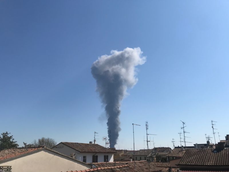 Una densa nuvola di fumo nero si è alzata in cielo nella tarda mattinata di oggi giovedì e si poteva vedere a chilometri di distanza.