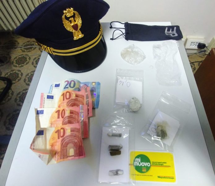 Detenzione stupefacenti a fini di spaccio. Una delle pattuglie messe in campo aveva il compito di vigilare le zone scolastiche, nell’ambito del progetto “Scuole Sicure”; in particolare, è stata verificata la segnalazione di un istituto del comprensorio, con la quale la direzione scolastica aveva informato la Polizia della presenza di soggetti sospetti spesso notati in un parchetto adiacente la scuola soprattutto negli orari di uscita dalle lezioni. Gli agenti hanno identificato sei ragazzi, alcuni dei quali minorenni, ed uno di essi, 17enne del luogo, è stato trovato in possesso di quasi 6 grammi di stupefacenti (haschish e marijuana) suddivisi in altrettanti involucri, nonché 50 euro (ritenuti provento di spaccio) e oggetti per l’uso ed il consumo di queste droghe. Il tutto è stato sequestrato ed il ragazzo denunciato alla Procura della Repubblica presso il Tribunale per i minorenni di Bologna per detenzione a fini di spaccio di stupefacenti, ed anche per ricettazione, perché aveva una tessera START Romagna di provenienza illecita.