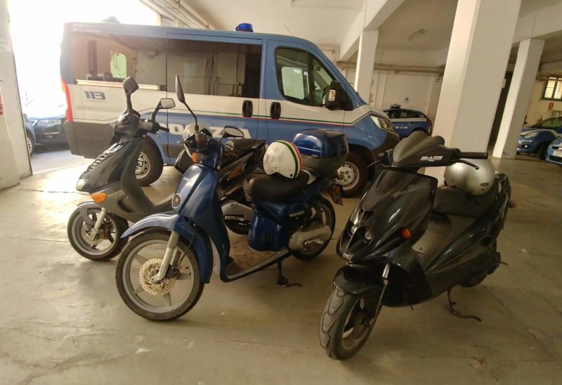 Quattro minorenni ed uno appena maggiorenne sono stati incastrati per il possesso di tre motocicli rubati. I ragazzi si trovavano in capannello intenti a fumare ed usare i loro smartphone, quando è sopraggiunta un’auto della Polizia che ha deciso di procedere ad un controllo. Era verso la mezzanotte, nei pressi di Porta Schiavonia. Dopo avere fornito i documenti di identità, nessuno di loro, con evidente imbarazzo, si dichiarava proprietario dei motocicli sui quali erano seduti o dove avevano appoggiati alcuni oggetti personali. La ragione è subito venuta a galla: tutti e tre i ciclomotori erano rubati, due a Forlì, uno a Cesenatico. E’ quindi scattato il sequestro e la denuncia per tutti e cinque per ricettazione in concorso.