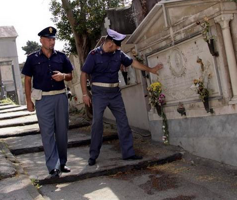 Nel corso dell’intervento effettuato dalla Volante dell’Ufficio Prevenzione Generale sono stati accertati ammanchi di vasellame ed arredi funebri da altre due tombe oltre a quella della persona che ha richiesto l’intervento. I ladri hanno preso di mira soprattutto oggetti in rame, in tutto tre vasi.