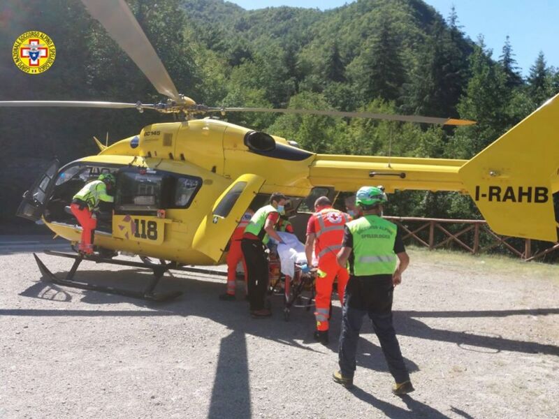 Alle 13.30 quando uno della comitiva si reca rapidamente alla casa di guardia della diga per chiamare il 118, in zona non c’è segnale telefonico. Viene inviato l’elicottero di Ravenna, l’automedica di Meldola e il Soccorso Alpino e Speleologico stazione Monte Falco, che invia la squadra in pronta partenza, con a bordo anche un infermiere, della Valle del Bidente. Le informazioni non erano chiarissime e l’elicottero è atterrato a Capaccio di Santa Sofia, l’equipaggio è salito sul mezzo fuoristrada del Soccorso Alpino e trasportato fino alle due gallerie. Il medico dopo averlo valutato e trattato il paziente ha deciso di trasferirlo in elicottero all’ospedale Bufalini di Cesena. A quel punto, l’elimedica va a posizionarsi nella piazzola di Romagna Acque, che si trova affianco alla diga. Il paziente viene poi imbarcato a trasferito al nosocomio di Cesena.