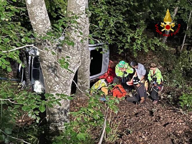 A seguito dell’incidente l’auto è finita per diversi metri nella scarpata a lato strada, quasi una trentina di metri.