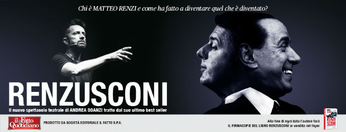 Renzusconi attraverserà i teatri italiani da qui alle elezioni politiche di marzo, da cui potrebbe nascere il renzusconismo definitivo della penisola: ovvero l’inciucio perenne. Sul palco, in novanta minuti tanto comici quanto malinconici, c’è Scanzi. C’è un grande schermo, su cui scorrono le gesta dell’allievo (ripetente) Matteo e del maestro (luciferino) Silvio. C’è una carrellata di politici piccoli piccoli. C’è il silenzio dei Roberto Benigni, c’è il rimpianto per il Rodotà mai stato al Quirinale.