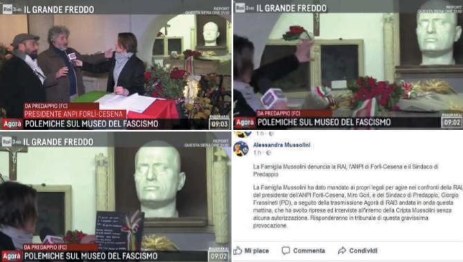 Ieri è stata la volta di Agorà, il programma mattutino su RaiTre. Un’inviata si è recata a Predappio, laddove tutto cominciò, essendo il luogo natale di Benito Mussolini. Lì c’è la casa d’infanzia e c’è la tomba. E c’è il progetto di un grande museo-centro studi dedicato al Ventennio, che il sindaco Giorgio Frassineti, del Pd, sta portando avanti nonostante i freni dei tanti cantori del politicamente corretto. E quale migliore luogo, per parlarne, se non l’interno della cripta? Un affronto che non è passato inosservato agli occhi degli eredi. “Parlassero davanti ai vivi e non davanti ai morti. A questa grave e violenta provocazione sapremo rispondere come famiglia”, ha commentato Alessandra Mussolini, parlando di un gesto “provocatorio e violento” e twittando: “Da questo momento è guerra!”. Sulla stessa linea anche Edda Negri Mussolini, nipote del Duce e figlia della sua ultimogenita Anna Maria e di Nando Pucci Negri, presentatore televisivo. Su facebook ha scritto: “La Famiglia Mussolini ha dato mandato ai propri legali per agire nei confronti della RAI, del presidente dell’ANPI Forlì-Cesena, Miro Gori, e del Sindaco di Predappio, Giorgio Frassineti (PD), a seguito della trasmissione Agorà di RAI3 andata in onda questa mattina, che ha svolto riprese ed interviste all’interno della Cripta Mussolini senza alcuna autorizzazione. Risponderanno in tribunale di questa gravissima provocazione”.
