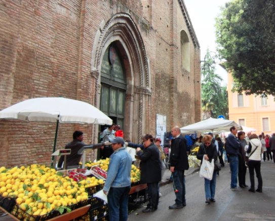 In prossimità della chiesa di San Pellegrino, conosciuta anche come chiesa dei Servi di Maria, vengono allestite in strada le bancarelle per la tradizionale sagra del cedro.