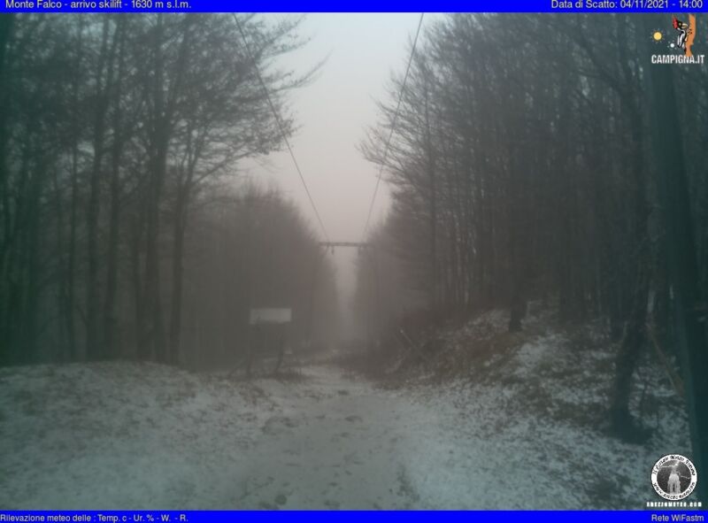 Temperature in calo, del resto siamo a novembre. In Campigna un provincia di Forlì-Cesena, le cime più alte oggi nel primo pomeriggio, sono state imbiancate, nonostante a valle ci fossero sprazzi di sole. Si sono visti fiocchi bianchi, che non hanno attaccato perché misti a pioggia, anche a quote più basse. (Nell’immagine la WebCam di Campigna)