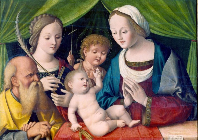 Dal 2 maggio il percorso espositivo della Quadreria di Palazzo Magnani si arricchisce di un altro capolavoro realizzato da uno dei padri della scuola rinascimentale forlivese di pittura: Marco Palmezzano. Accanto al suo San Sebastiano, infatti, lo storico edificio di via Zamboni 20, a Bologna, ospiterà fino al 17 giugno la Sacra Famiglia con San Giovannino e Santa Caterina d’Alessandria, opera concessa temporaneamente alla Quadreria dalla Fondazione Cassa dei Risparmi di Forlì. L’occasione di questa collaborazione con la Fondazione forlivese nasce dal prestito del dipinto di Lorenzo Sabatini, Giuditta con la testa di Oloferne della Collezione d’Arte UniCredit, richiesto per la mostra “L’eterno e il tempo tra Michelangelo e Caravaggio. Storia, natura e pietà”, in corso a Forlì fino al 17 giugno, presso i Musei di San Domenico.