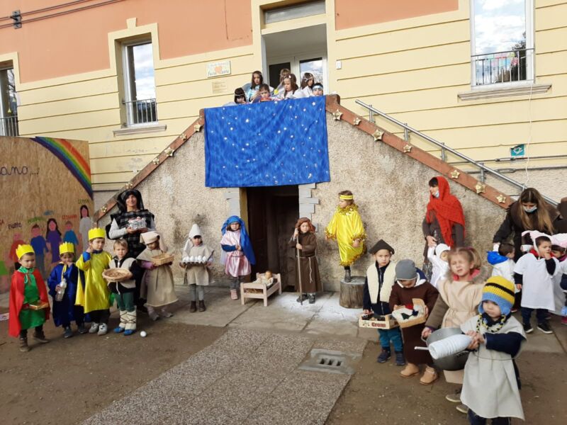 Quest’anno non potendo fare partecipare le famiglie, le insegnanti non hanno però rinunciato a questo momento così sentito dai bambini, dove loro sono i protagonisti con canti, balli e drammatizzazioni, interpretando i personaggi del presepe, per festeggiare un compleanno speciale, la nascita di Gesù. La recita è stata ispirata da una storia di Natale intitolata “Sulla strada di Betlemme” che infonde un messaggio di speranza: “la speranza è sempre in cammino e ci fa camminare tutti insieme sia sulla strada di Betlemme, sia nella vita, con gioia, con voglia di fare del bene e di aiutare chi ha bisogno”. Per tenere vivo il desiderio di arrivare, ma arrivare tutti insieme, è stato realizzato un breve filmato della recita realizzata nel giardino della scuola, all’interno del quale sono stati inseriti dei brevi video dove ogni famiglia esprimeva un pensiero, un desiderio da portare nel cuore in questo cammino verso il Natale.