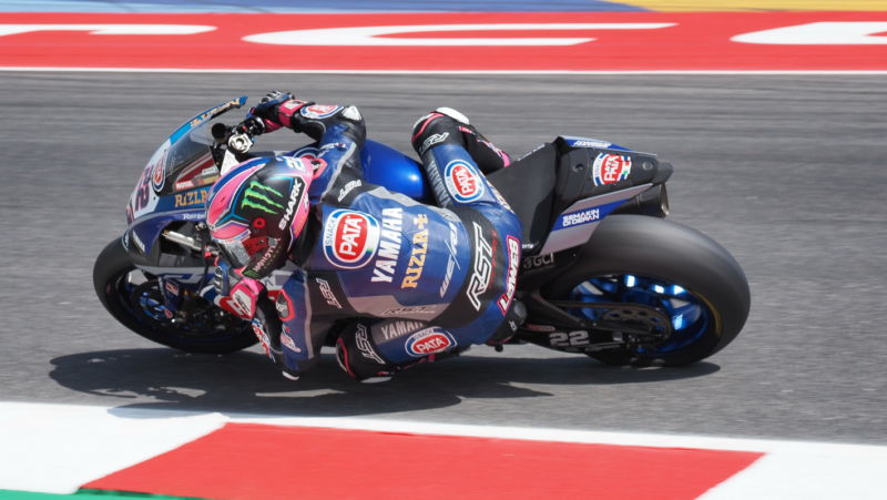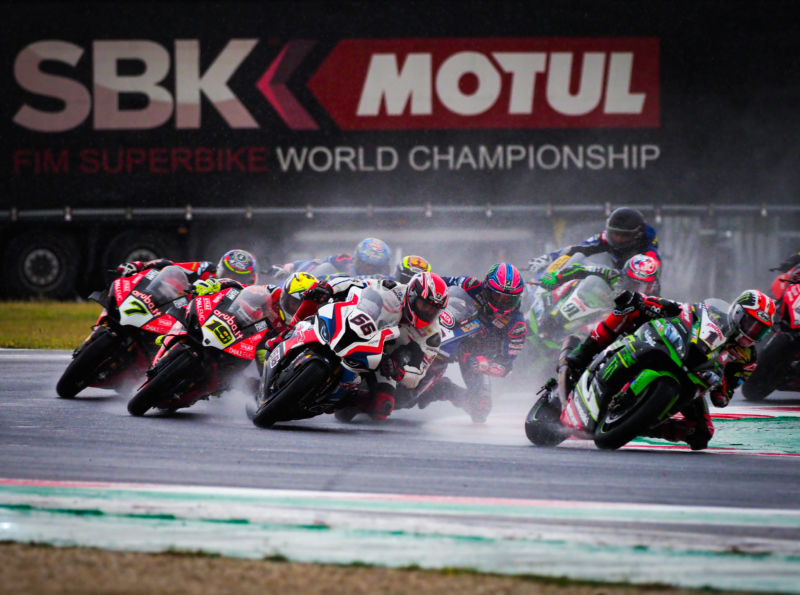 Race 1: al semaforo verde di Race 1 si scatena un nubifragio e durante il giro di ricognizione la direzione di gara decide di esporre bandiera rossa con partenza posticipata secondo la procedura ‘quick restart’. Al semaforo verde Rea si mette in testa, su di lui rinviene Lowes. I due battagliano fra loro, Lowes passa in testa e i due prendono spazio rispetto a Sykes e Bautista che seguono. Al quarto giro altra pioggia improvvisa e fortissima, con bandiera rossa immediata.