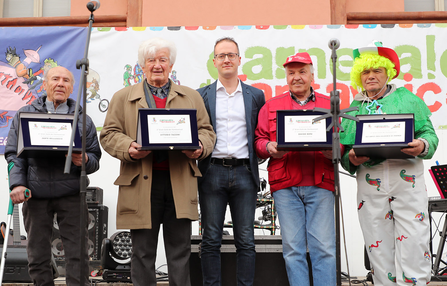 Dopo essere arrivati in piazza Matteotti, i quattro costruttori sono stati chiamati sul palco per essere premiati dal vice sindaco Patrik Cavina, con una targa a ricordo e riconoscenza per quanto fatto per il carnevale. Affollati per tutto il pomeriggio sono stati anche i gonfiabili, posti sempre in piazza Matteotti, a disposizione gratuitamente per i più piccoli.