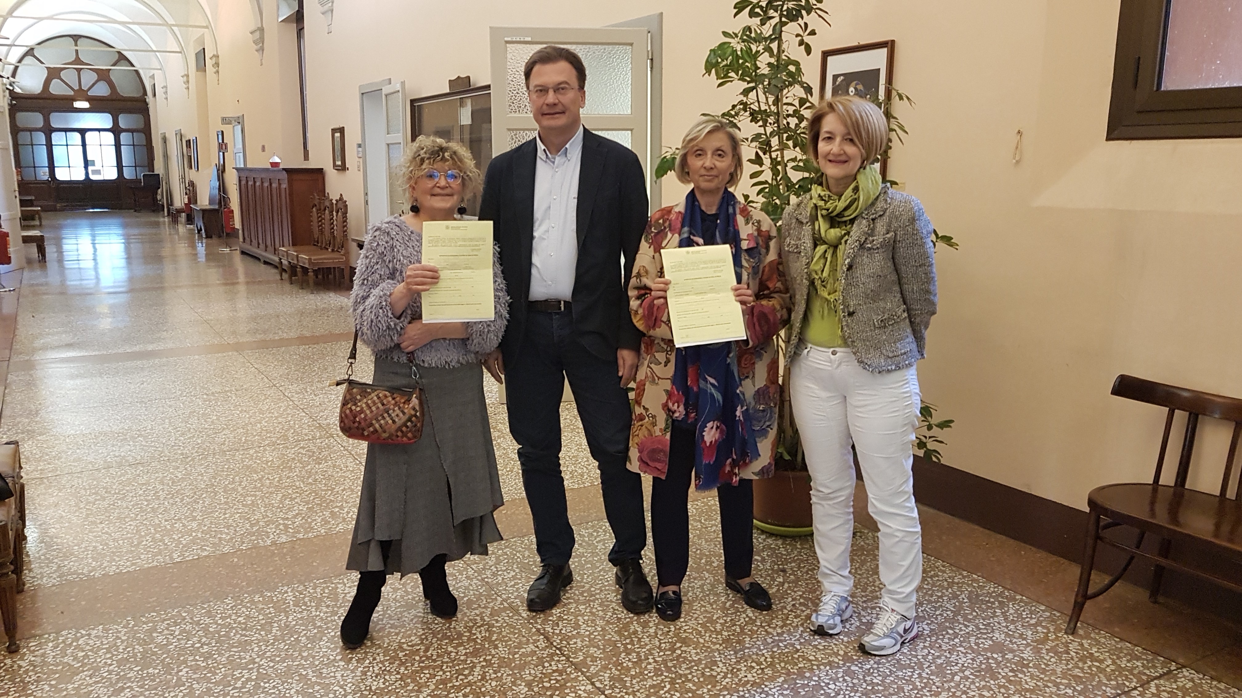 Il direttore generale Andrea Rossi e il direttore amministrativo Maria Teresa Donattini che hanno accolto Rina e Nadia per ringraziarle personalmente per le iniziative che con tenacia ed entusiasmo organizzano ogni anno, promuovendo un messaggio importante di salute fisica, che si realizza prima di tutto attraverso le camminate all’aperto; di salute psicologica, che passa dal divertirsi in compagnia e di impegno sociale. “Oramai ci sentiamo noi stessi parte del gruppo – ha detto Andrea Rossi – sono tante le colleghe dell’Azienda Usl che partecipano alle camminate e io stesso vi presenzio sempre perché oltre alle importanti donazioni che sono state raccolte nel tempo (con questa Stradozza arriviamo a circa 27mila euro) non deve sfuggire il grande valore comunitario di queste iniziative. Un grazie sentito e di cuore a tutte le donne che hanno partecipato alla Stradozza 2019, alle organizzatrici e ai tanti che le coadiuvano, nonché al Comune di Dozza che ne è partner e la ospita sul suo splendido territorio”.
