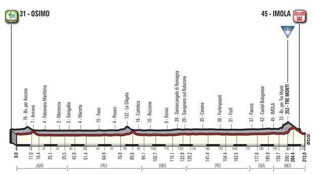 Un Giro duro che non lascia respirare e spacca le gambe e che sfreccerà anche in Romagna il 17 maggio nel corso della 13° tappa Osimo – Imola, con arrivo all’Autodromo. Una tappa per velocisti, anche se il circuito dei Tre Monti prima dell’arrivo potrebbe mischiare le carte.