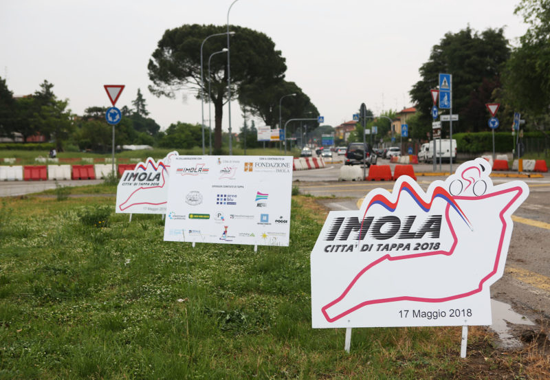 Si chiama ‘Imola Città di Tappa 2018’ il logo che contraddistingue l’arrivo in città della 12.a tappa del Giro d’Italia, giovedì 17 maggio. Da oggi, sotto forma di una quarantina di sagome, montate lungo le vie di accesso alla città e nelle principali strade di percorrenza interna, ricorda a chi transita l’appuntamento con il grande ciclismo.