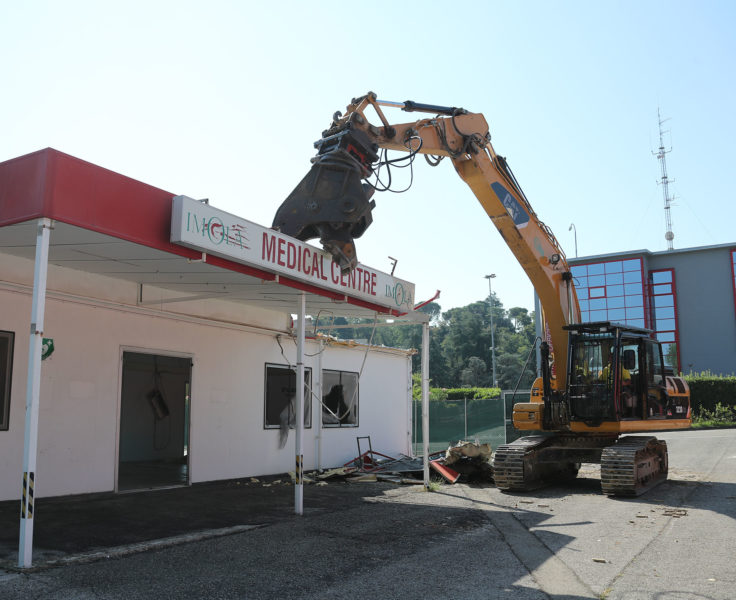 Ad inizio settimana hanno preso il via i lavori di demolizione del Centro Medico, in vista della gara del Mondiale Cross in programma all’Autodromo Internazionale Enzo e Dino Ferrari il 29 e 30 settembre. Già previsto dal piano triennale di sviluppo dell’impianto, lo smantellamento si è reso inoltre necessario in quanto la pista cross occuperà anche parte dello spazio dove ora sorge il Centro Medico.