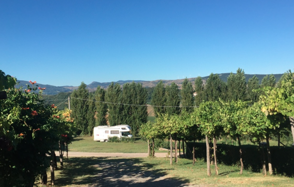 Punto sosta camper, approvigionamento idrico ed elettrico. Utilizzo di tavoli e sedie, assaggi dei vini in produzione, visita azienda e cantina