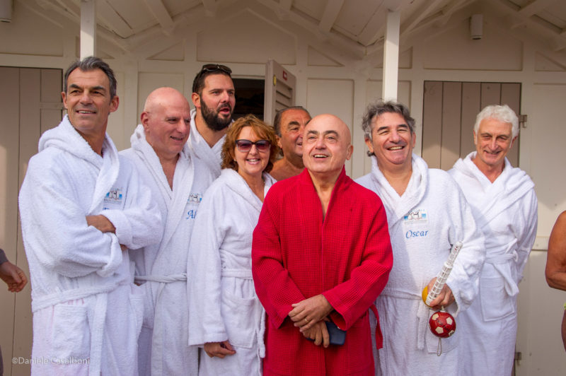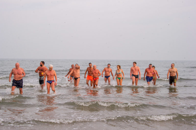 Per l’occasione anche gli habitué del tuffo invernale, capitanati dal comico riccionese Paolo Cevoli, si sono dati appuntamento alla Spiaggia del Sole per il consueto bagno domenicale, potendo questa volta usufruire piacevolmente di spogliatoi e docce calde, oltre che del conforto di un ottimo brulè di mele.