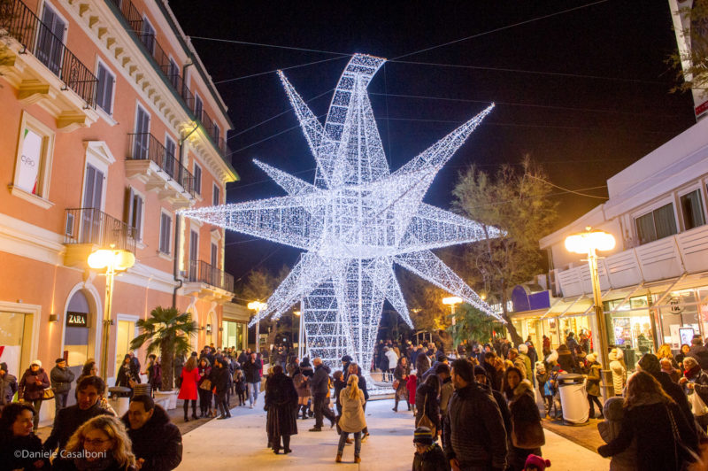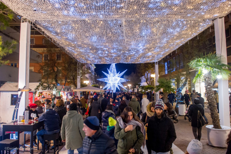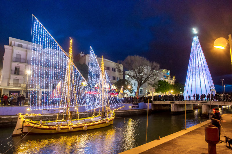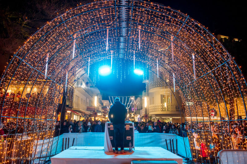 Al termine del countdown l’occhio di bue ha illuminato un balcone da cui Alessandro Coli ha intonato Last Christmas degli Wham, seguito, da un’altra postazione più in basso, da Veronica Villa che ha eseguito l’ Hallelujah di Leonard Cohen. Contemporaneamente si sono illuminate anche le imbarcazioni storiche Saviolina e Marzia e in viale Ceccarini si è accesa la stella gigante con 26.000 luci a led. Fari luminosi, coriandoli dorati e djset hanno chiuso il pomeriggio di festa, una giornata in cui il centro della città somigliava al Ferragosto.