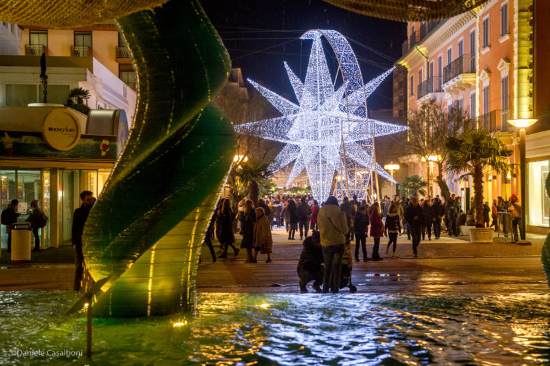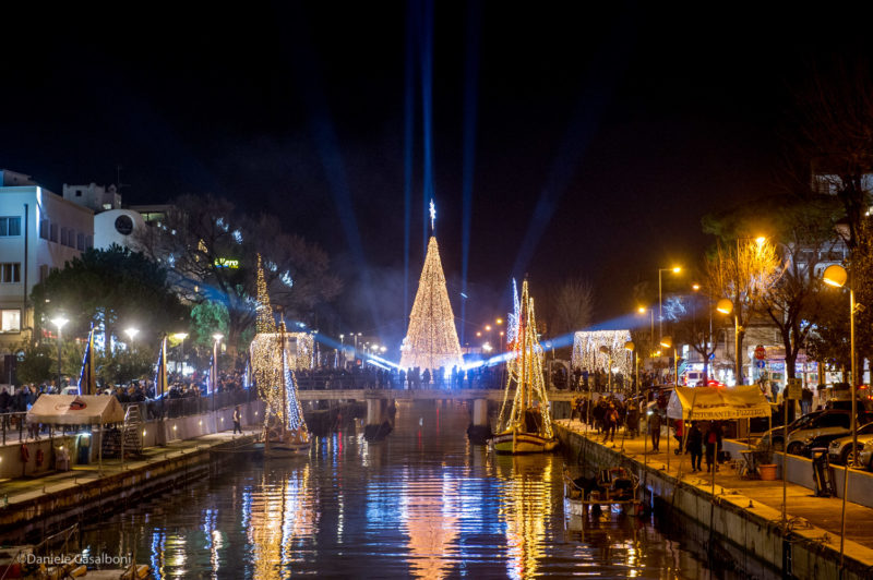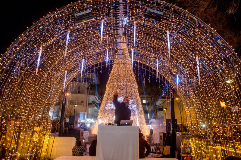 Al termine del countdown l’occhio di bue ha illuminato un balcone da cui Alessandro Coli ha intonato Last Christmas degli Wham, seguito, da un’altra postazione più in basso, da Veronica Villa che ha eseguito l’ Hallelujah di Leonard Cohen. Contemporaneamente si sono illuminate anche le imbarcazioni storiche Saviolina e Marzia e in viale Ceccarini si è accesa la stella gigante con 26.000 luci a led. Fari luminosi, coriandoli dorati e djset hanno chiuso il pomeriggio di festa, una giornata in cui il centro della città somigliava al Ferragosto.
