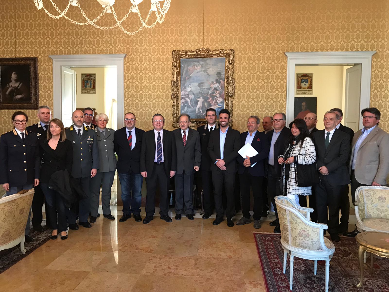 In data odierna il Prefetto Enrico Caterino, alla presenza dei vertici provinciali delle Forze dell’Ordine, ha incontrato i rappresentanti della Provincia di Ravenna, dei Comuni di Ravenna e Cervia, della Camera di Commercio Industria Artigianato Agricoltura, della Legacoop, della Confcooperative, della Confcommercio, della Confesercenti, di Confartigianato, della C.N.A., della Cooperativa Spiagge Ravenna, della Cooperativa Bagnini di Cervia e dall’A.N.A.C.I., per la sottoscrizione del rinnovo dell’Accordo di collaborazione “Azioni sinergiche per la sicurezza in riviera”.