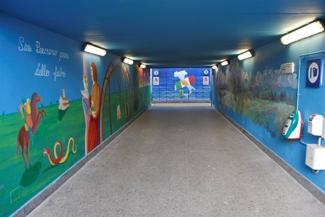 La cittadina di Russi, nel ravennate, si racconta attraverso le opere di cinque artisti locali, realizzate sulle pareti del sottopassaggio della stazione ferroviaria. Una collaborazione virtuosa quella fra il Comune e Rete Ferroviaria Italiana (Gruppo Fs Italiane), pensata con l’obiettivo di riqualificare uno spazio pubblico a rischio di atti vandalici, offrendo allo stesso tempo uno spaccato della storia russiana.
