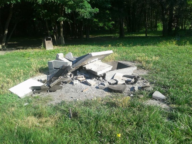 Il barbecue era di cemento e quindi difficilmente attaccabile, ma purtroppo qualche idiota ha pensato bene di raderlo al suolo, e ci è riuscito. Ora è rimasto un ammasso di detriti cemento.
