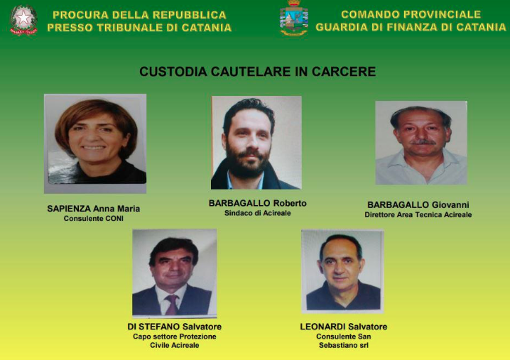 I Finanzieri del Comando Provinciale di Catania hanno eseguito un’ordinanza del Gip del Tribunale etneo che ha disposto misure cautelari coercitive nei confronti di otto persone, tra cui il Sindaco di Acireale, un membro della giunta comunale e due dipendenti pubblici in servizio presso il Comune di Acireale. L’operazione – denominata “SIBILLA” – , iniziata nel 2017 e condotta dalla Tenenza di Acireale sotto la direzione di questa Autorità giudiziaria , ha portato alla luce 4 diversi episodi di corruzione e turbativa d’asta nella gestione della cosa pubblica.