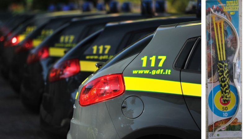 Si tratta di archi “indiani” con relative frecce importati dalla Cina e colpiti da divieto di vendita, in quanto contenenti alcune componenti in plastica nelle quali è risultato presente il dibutilftalato, un solvente chimico vietato in tutti i giocattoli poiché altamente dannoso per i bambini.