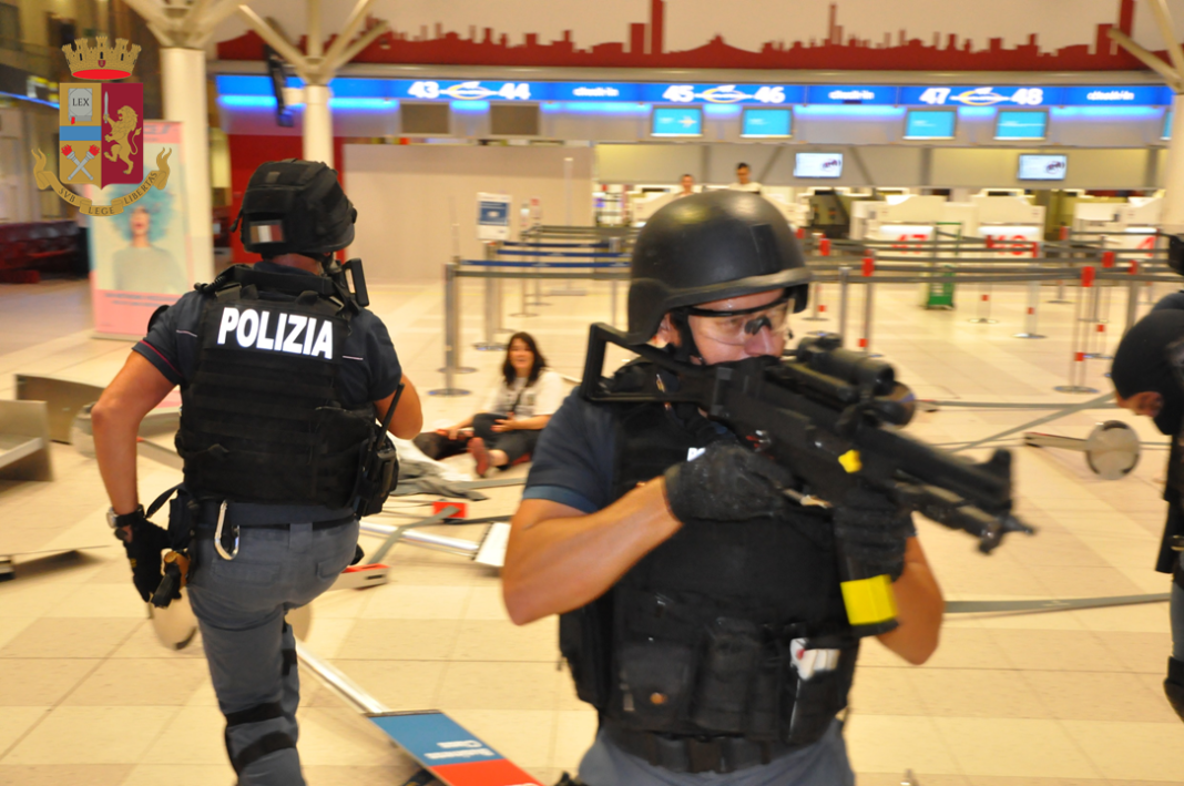Il Dirigente l’Ufficio Polizia di Frontiera immediatamente attivava tutte le procedure previste per il caso in questione. Con il Direttore ENAC si disponeva l’immediata chiusura (fittizia) dell’aeroporto, e l’evacuazione dell’intera area interessata dall’attacco terroristico.